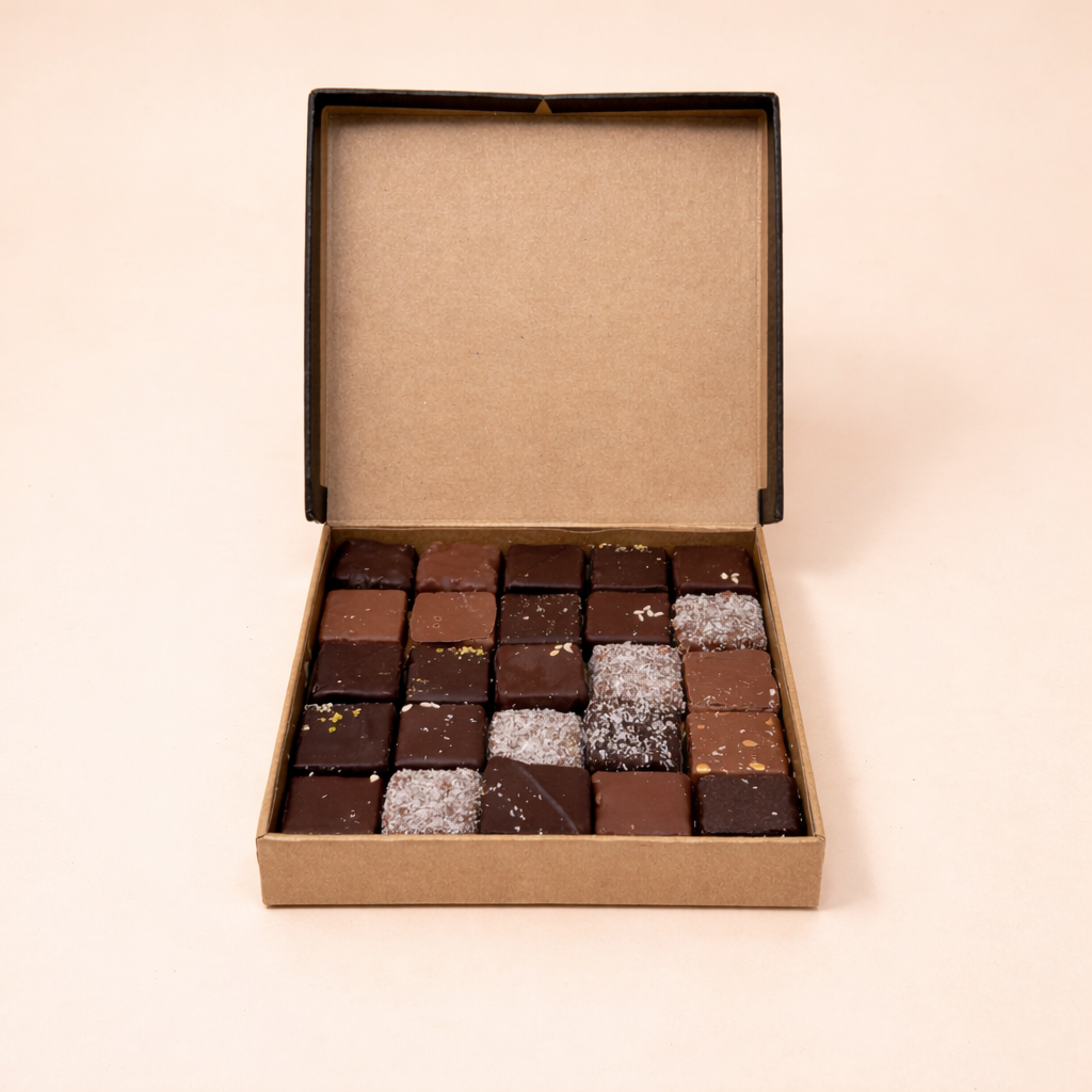 Coffret Initiation Ganaches et Pralinés – 25 chocolats