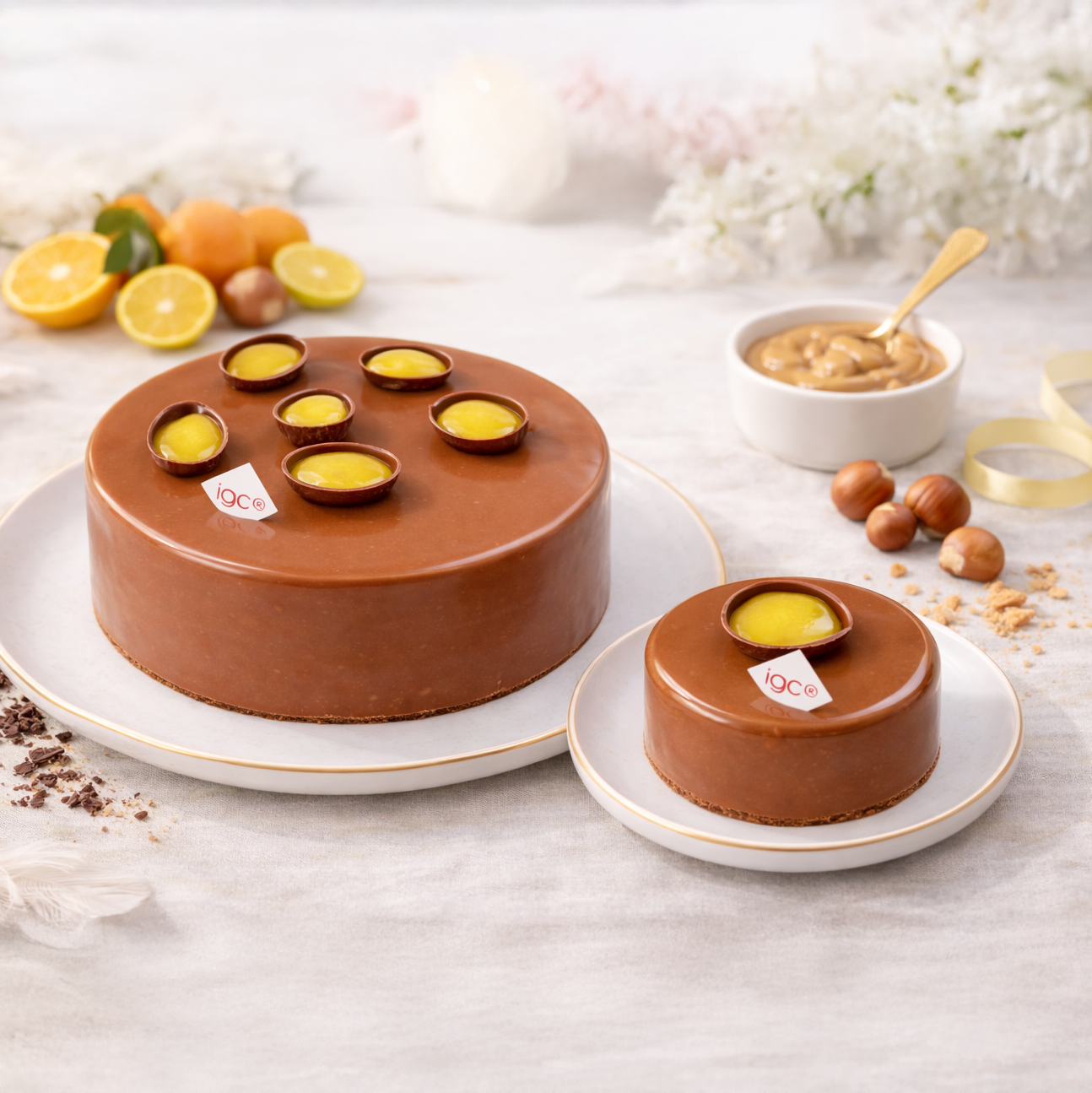Notre création exclusive pour Pâques : L’Entremets Noisette Agrumes.